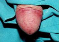 2.环状溃烂性龟头炎,在龟头上有小红点和包皮上有小红点,逐渐扩大,呈环状,可形成浅表性溃疡面。